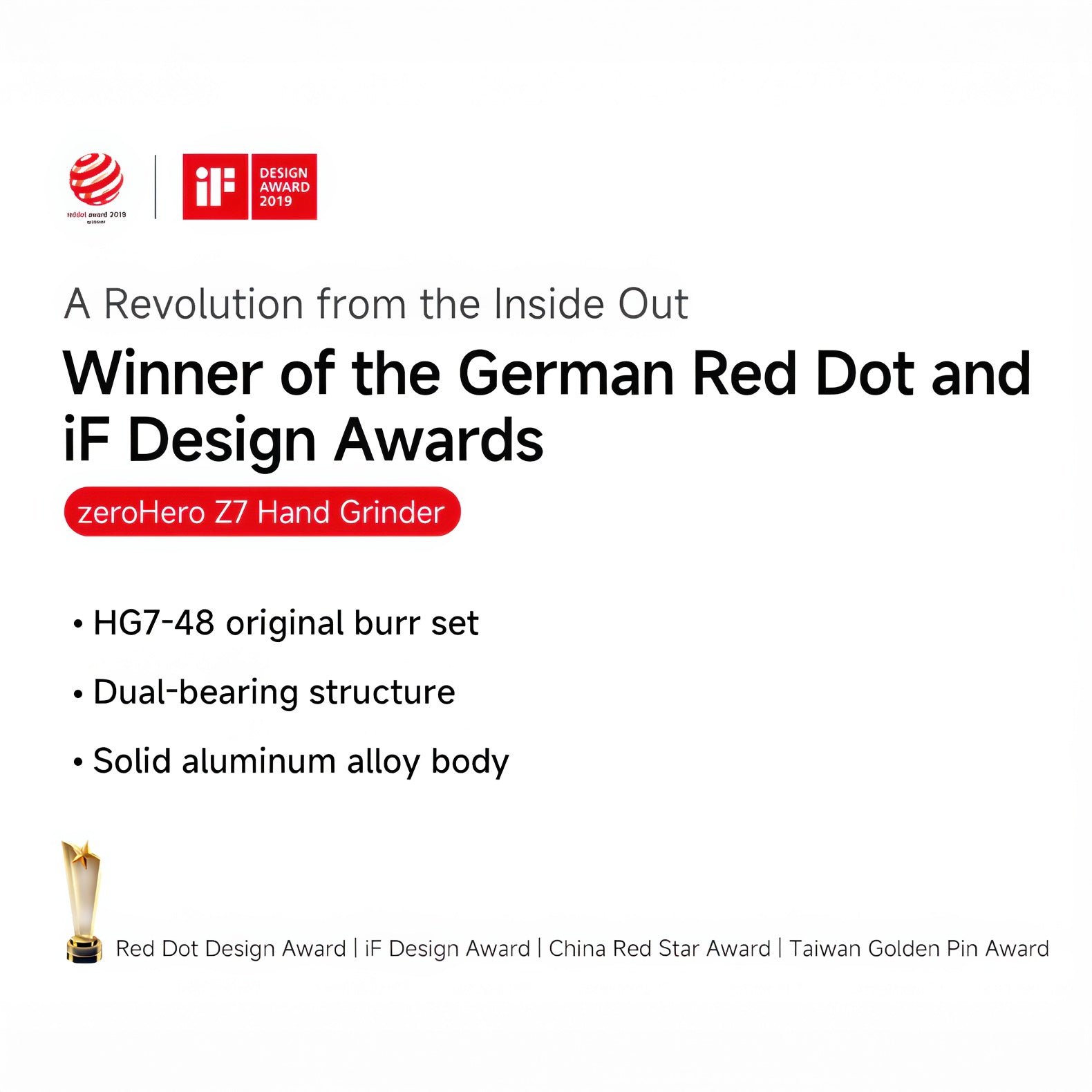 Experience a new level of hand-grinding performance with the zeroHero Z7, an award-winning design that delivers smoother, faster, and effortlessly powerful grinding in a compact, premium form.